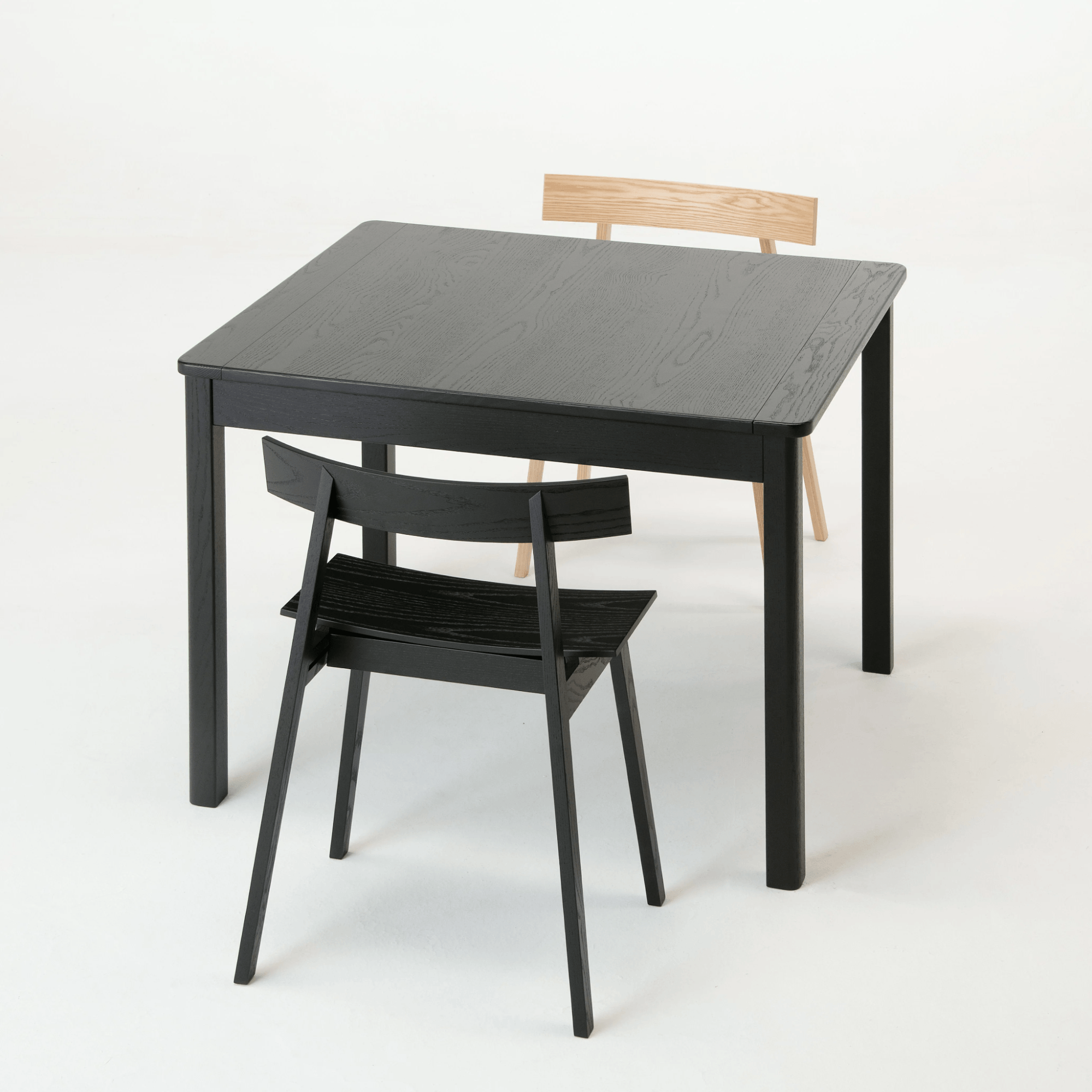 背もたれがテーブルの天板と同じくらいの高さのチェアを選べば、視線が奥まで抜け、空間全体がスッキリと広く見えます。さらに、使わない時はテーブルの下に完全に収納できるスツールを活用すれば、生活動線を最大限に広く保つことが可能です。
